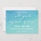This gorgeous "Will You Be My Maid of Honour?" card is an addition to a growing set that is perfect for a casual, artsy or beach-themed wedding. The subtle blue and teal ombre watercolor background perfectly offsets the distinctive modern script font from my collection which I used to create the main message in the centre. All other text is rendered using a versatile, sans-serif font set which you can choose as you will. || The back features a different view of the beautiful watercolor image which is left intentionally blank so you can hand write a personal message as you like.
