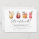Modern birthday party invitations featuring watercolor illustrations of winter/holiday cocktails in shades of red, green, orange, and brown. The phrase "Let's Celebrate!" is displayed in a handwritten script with your party details shown below. The adult birthday invitations are perfect for winter and Christmas/holiday birthday parties!