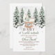 Watercolor Winter Forest Gray Baby Shower Invitation