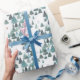 A holiday wrapping paper features original watercolor illustrations of winter forest.