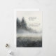A simple minimal soft serene watercolor featuring a snowfall in the forest, a soft fog, and evergreen pine trees, with a simple verse about peace.