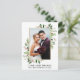Elegant Watercolor Winter Greenery Wedding Photo Thank You Postcard includes eucalyptus leaves and red holly berries. Gold Frame.