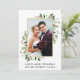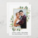 Elegant Watercolor Winter Greenery Wedding Photo Thank You Card includes eucalyptus leaves and red holly berries. Gold Frame.