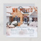 Hand painted look of winter home, blanketed with snow. Deliver the news of your move with artistic panache. Colours of hazelnut brown and stormy grey create a trendy new address announcement.
