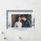 Wish loved ones a Merry Christmas with our elegant Watercolor Winter Pine Trees holiday photo card. The holiday card displays your photo framed by a background of bluish grey watercolor pine trees, flying birds, and a subtle watercolor wash. Personalise the card by adding a custom greeting and your names. The card reverses to a bluish grey background with a white snow design.