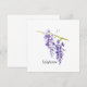 Pretty botanical style watercolor painting of hanging purple wisteria in full bloom, with text on white background