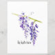 Paper for scrapbooking and other paper crafts features pretty botanical style watercolor painting of hanging purple wisteria in full bloom, with text on white background