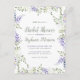 This spring bridal shower invitation features a floral frame with purple watercolor wisteria flowers and green foliage. Trendy typography mixing handwritten and serif fonts.