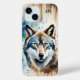 Phone case featuring a watercolor painting of a wolf. You can add your custom initials (optional, you can also delete the template). Beautiful for an animal lover.