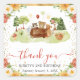 Watercolor Cute Woodland bear, squirrel, rabbit, hedgehog and racoon design with Yellow and red fall flowers, gold borders and gold glitter confetti with orange stripes background
