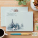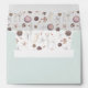 Christmas Envelope | Beautiful watercolor mountain scene - snowy evergreen pine trees, with three magical white deer in the foreground -inside Elements from our Watercolor Woodland Deer design all mixed up for a fun pattern, on the back flap a winter botanical spray - . All on a very light mint green background. This is part of the Watercolor Woodland Deer Collection by WhimsicalArtwork™