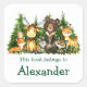 Watercolor Woodland Forest Animals and Pine Trees Bookplate Labels. Baby Animals include Bear, Deer, Moose, Racoon, Bunny Rabbit, Fox and Owl with forest greenery. Add Name.