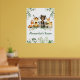 Watercolor Woodland Animals Room Poster Print. Baby Animals include Bear, Deer, Moose, Racoon, Bunny Rabbit, Fox and Owl on eucalyptus leaves and forest greenery. Add Name.
