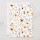 A whimsical baby shower invitation card with a cute fox in autumn woodland scenery on the front and an elegant floral pattern on the back.