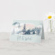Christmas Greeting Card | Photo Inside - Let it Snow - Beautiful watercolor mountain scene - snowy evergreen pine trees, with four white goats browsing in the forest in the foreground -inside a place for your photo and embellished with a winter botanical spray - a winter botanical floral spray on the back . All on a very light mint green background. This is part of the Winter Wonderland Christmas Goats Collection by WhimsicalArtwork™