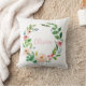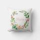 Watercolor wreath blush pink personalised pillow. Personalised baby gift in green, pink, peach and blue inspired colour scheme. With space for a name.