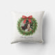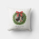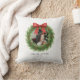 Modern Christmas throw pillow featuring a simple and minimal design with your favourite photo inside of a watercolor wreath. Use the template to add a name and the year.