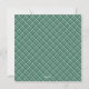 Starry green photo Christmas card featuring a watercolor wreath photo frame on a green background adorned with stars. A plaid pattern at the back. Easily personalise this green photo Christmas card with your photo and the family name.
