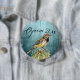 Watercolor wren perching on a cactus on a teal background and fairy lights bridal party button favour. Make one for each member of the wedding party or create a memorable, lasting party favour.