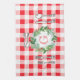 Watercolor Xmas Wreath MONOGRAM Red Check Tea Towel