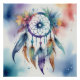 This is a watercolor painting of a dreamcatcher with colourful flowers and feathers. The background is a light blue with splashes of colour. This image could be interpreted in many different ways. It could be seen as a representation of the power of dreams, the importance of nature, or the beauty of the world around us. It could also be seen as a symbol of protection, hope, or new beginnings. The feathers are said to catch bad dreams and trap them in the web, while the good dreams pass through and reach the dreamer.
