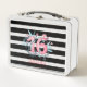 Modern black and white stripes and colourful watercolor numbers and flowers. Optional monogram