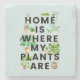 Introducing our Watercolor Houseplant Gardening Quote Stone Coaster! Featuring watercolor illustrations of potted houseplants in boho style and the quote 'home is where my plants are.' Suitable for plant enthusiasts.
