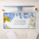 Add a floral accent to your workspace with this watercolor desk mat. It features watercolor white anemone, blue hydrangea and baby's breath. Personalise by adding your details. This hydrangea desk mat is perfect as a gift.