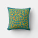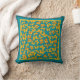 A pretty Throw Pillow or Cushion, with a pattern of Golden Butterflies, handpainted in watercolour by Judy Adamson, on a teal background.