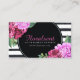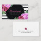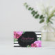 Watercolour PInk Peonies Black and White Stripes Business Card