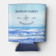 Watercolour waves background with custom beach house writing in smart font. This nautical design has a compass in the middle with personalised family name and year of establishment which can be changed to your preferences.