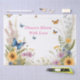 Pictured In This Delicate Watercolour Design Are Yellow, Blue And Pink Wildflowers, With Willowy Grasses And Flying Butterflies.