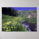Waterfall and wildflowers in alpine meadow, 2 poster