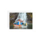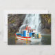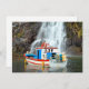A fishing boat pictured against the backdrop of a waterfall; Quintupeu Fjord, Northern Patagonia, Chile - a beautiful corner of South America where the Andes plunge into the Pacific Ocean. [Our travel photography and designs are available as gifts for the home, cards, jigsaw puzzles, wall art and more]