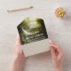 All in one wedding invitation featuring a magical forest design with waterfalls. The invitation has a QR code template to which you can easily add a URL to your own website.