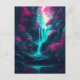 Waterfall Landscape Forest Pink Blue Fantasy Postcard