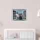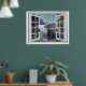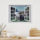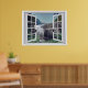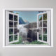 Beautiful flowing waterfall view, faux window scene, for a windowless office wall. Fun, realistic optical illusion scenic poster for an office or study wall.