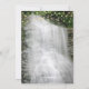 String lights at the top of this rustic outdoor themed wedding invitation add an enchanted forest feel to the waterfall photo.