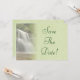 Be unique and pick a beautiful waterfall theme for your wedding! Professional photo of Hidden Falls in Hocking Hills Ohio taken by Michael Shake and is available in a full size priint. The smooth white water of the waterfall resembles a bridal veil making it perfect for a wedding theme. This wedding save the date card design comes in many paper prodcuts and postage to suit all your wedding set needs.
