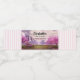 Event water bottle labels with a scenic image of a peaceful purple lake. Surrounded by lush cherry trees and waterfalls.