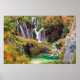 Scenic waterfall in beautiful picturesque autumn scenery of the Plitvice Lakes National Park in Croatia.
