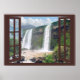 Beautiful waterfalls view, faux window scene, for a windowless office wall. Fun, realistic optical illusion scenic poster for an office or study wall.