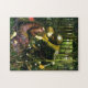 John William Waterhouse La belle dam sans mercie puzzle. Oil painting on canvas from 1893. Pre-Raphaelite painter John William Waterhouse regularly drew on literary themes, and The Beautiful Woman Without Mercy is inspired by an 1820 poem published by the English poet John Keats. A knight in shining armour gazes down into a beautiful woman’s eyes as she sits in a lush copse of trees. The girl wears a purple dress with white polka dots on the skirt and a pink heart on the sleeve. Her hair is dark blonde and she is surrounded by beautiful flowers and dark green grass. A great gift for fans of J.W. Waterhouse, the Pre-Raphaelites, Keats, and Romantic English painting.