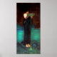 John William Waterhouse Circi Invidiosa poster. Oil painting on canvas from 1892. English painter John Waterhouse’s Circe Invidiosa depicts a classic scene from Ovid’s Metamorphoses. The goddess Circe stands wearing a beautiful peacock dress pouring a bowl of green potion into the pool into which her romantic rival Scylla is going to bathe. The waters below bubble and turn an enchanting aquamarine. A great gift for fans of J.W. Waterhouse, Greek mythology, the Pre-Raphaelites, Ovid, and English Romantic painting.