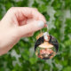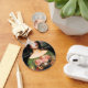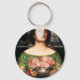 John William Waterhouse Gather Ye Rosebuds While Ye May key chain. Oil painting on canvas from 1909. Based on the Robert Herrick poem, Gather Ye Rosebuds is one of English painter John Waterhouse’s finest literary works. The painting features a beautiful girl in a green dress with gold lace and floral embroidery. The young woman holds a pewter bowl of freshly cut pink, red, and white roses in her hands. Her dark red hair is fastened with pearls, and a mirror stationed behind her reveals a stained glass window featuring a coat of arms and purple tulips. A great gift for fans of J.W. Waterhouse, Romantic English art, literary painting, and the Pre-Raphaelites.