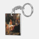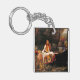 Keychain featuring John William Waterhouse’s oil painting The Lady of Shalott (1888). A beautiful woman in a white dress escapes on a boat from her fate to look at all the world through a mirror and weave a tapestry from it—but upon viewing Prince Lancelot, the curse follows the Lady of Shalott to her demise. Bright autumnal colours paint this tragic scene. A breathtaking gift for Arthuriana enthusiasts and Pre-Raphaelite collectors.