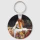 John William Waterhouse The Lady of Shalott key chain. Oil painting on canvas from 1888. The Lady of Shalott is a beautiful Pre-Raphaelite painting of a scene from Alfred Lord Tennyson’s poem of the same name. The painting depicts the doomed Lady of Shalott sailing towards Camelot in a small boat draped with a beautiful red tapestry she wove while falling in love with Lancelot. In the boat sit three candles and a crucifix from which the girl looks away. The lady herself is clothed in a flowing light blue mediaeval dress embroidered with gold. Her hair is light auburn and she holds the chain of the boat as it presses away from the dock into the reeds and lily pads beyond. A great gift for fans of John William Waterhouse, the Pre-Raphaelites, Romantic English painting, and Arthurian Legend.