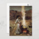 John William Waterhouse the Magic Circle postcard. Oil painting on canvas from 1886. The Pre-Raphaelite painter John Waterhouse regularly drew from literary and mythological themes. The Magic Circle continues the artist’s fascination with the supernatural, depicting a sorceress with dark hair drawing a magic circle in the dirt with a wand. Wearing a blue dress decorated with Persian figures, she stands beside a cauldron smoking above the orange and red embers of a glowing fire. Black ravens stand nearby watching the ritual unfold. A great gift for fans of J.W. Waterhouse, the Pre-Raphaelites, magic, sorcery, and English Romantic painting.