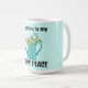 Watering Can Gardening Design Mug with customisable text and background colour.