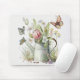 Retro watering can with tulips and butterflies in a watercolor effect.